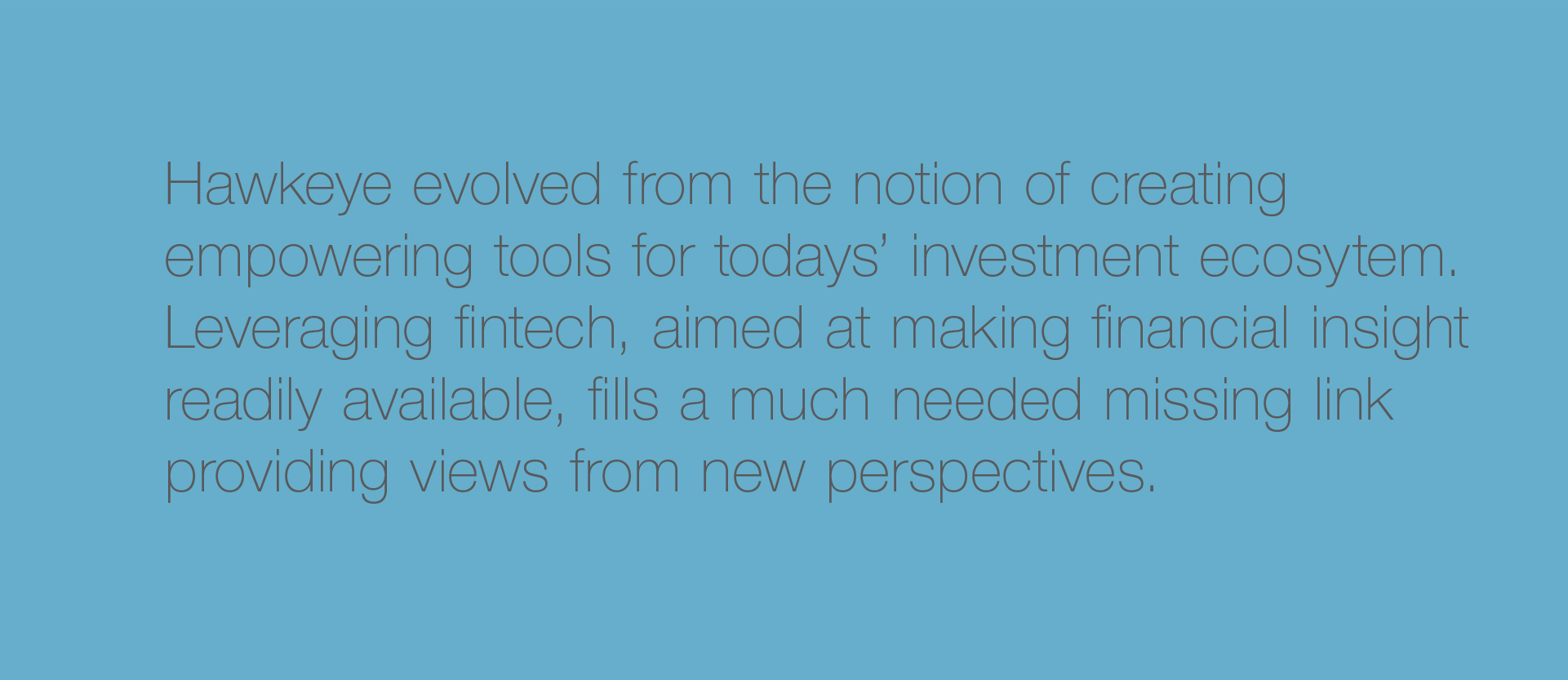 Hawkeye, Zürich Switzerland, is a modular OpenAPI data and portfolio analytics platform that enables wealth managers and family offices to provide state-of-the-art reporting and portfolio analytics, including crypto assets and non-bankables. The Hawkeye name coupled with a metaphoric icon representing wings and flight became the basis for the brand expression.