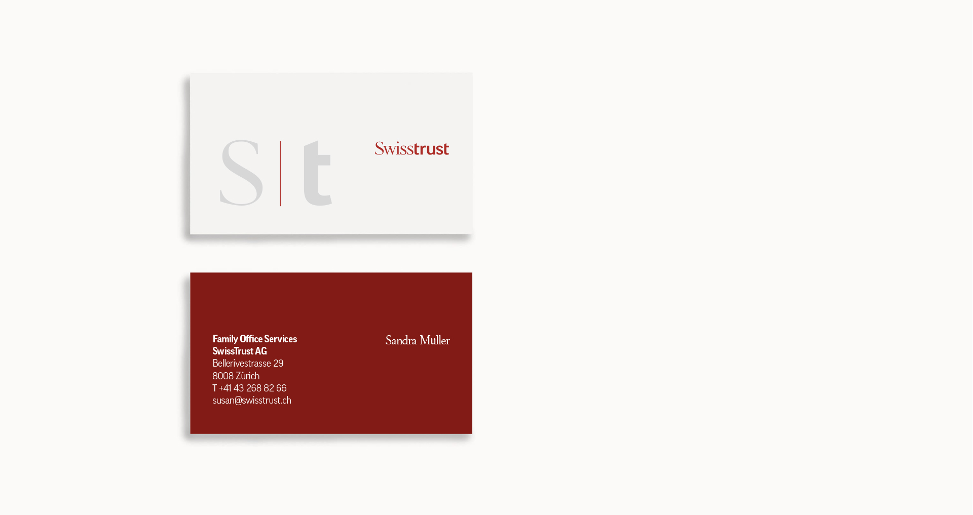 Swisstrust Family Services and Interhold Investments of Zürich Switzerland, safeguard futures for long standing clients as well as new ones. We were challenged to build two brands with the objective of having them family together while distinctly different.