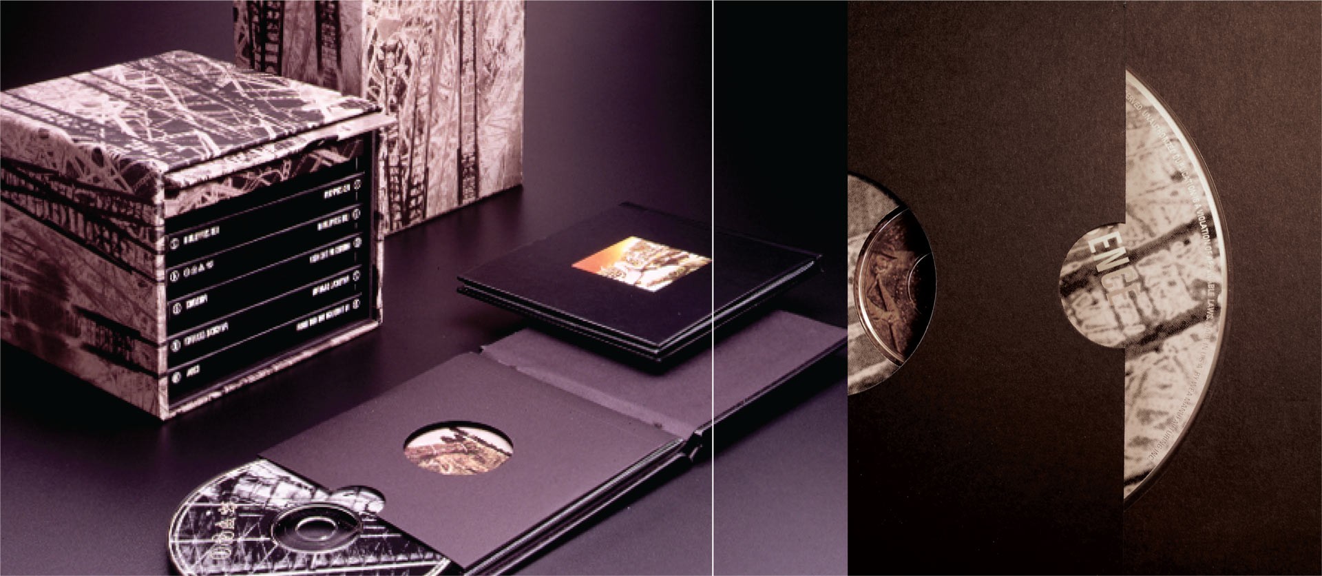 Robert Plant of Led Zeppelin selected our package design for The Complete Studio Recordings CD box set. The exterior is wrapped with an image of a dirigible under construction sourced from a naval institute. The interior features original album artwork in five double album booklets with biography and liner notes. Seventies period velvet jackets were used as backgrounds and fashionably worn afterwards by the design team.
