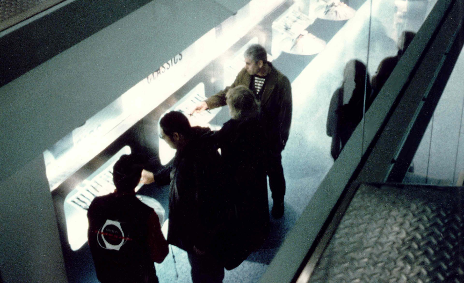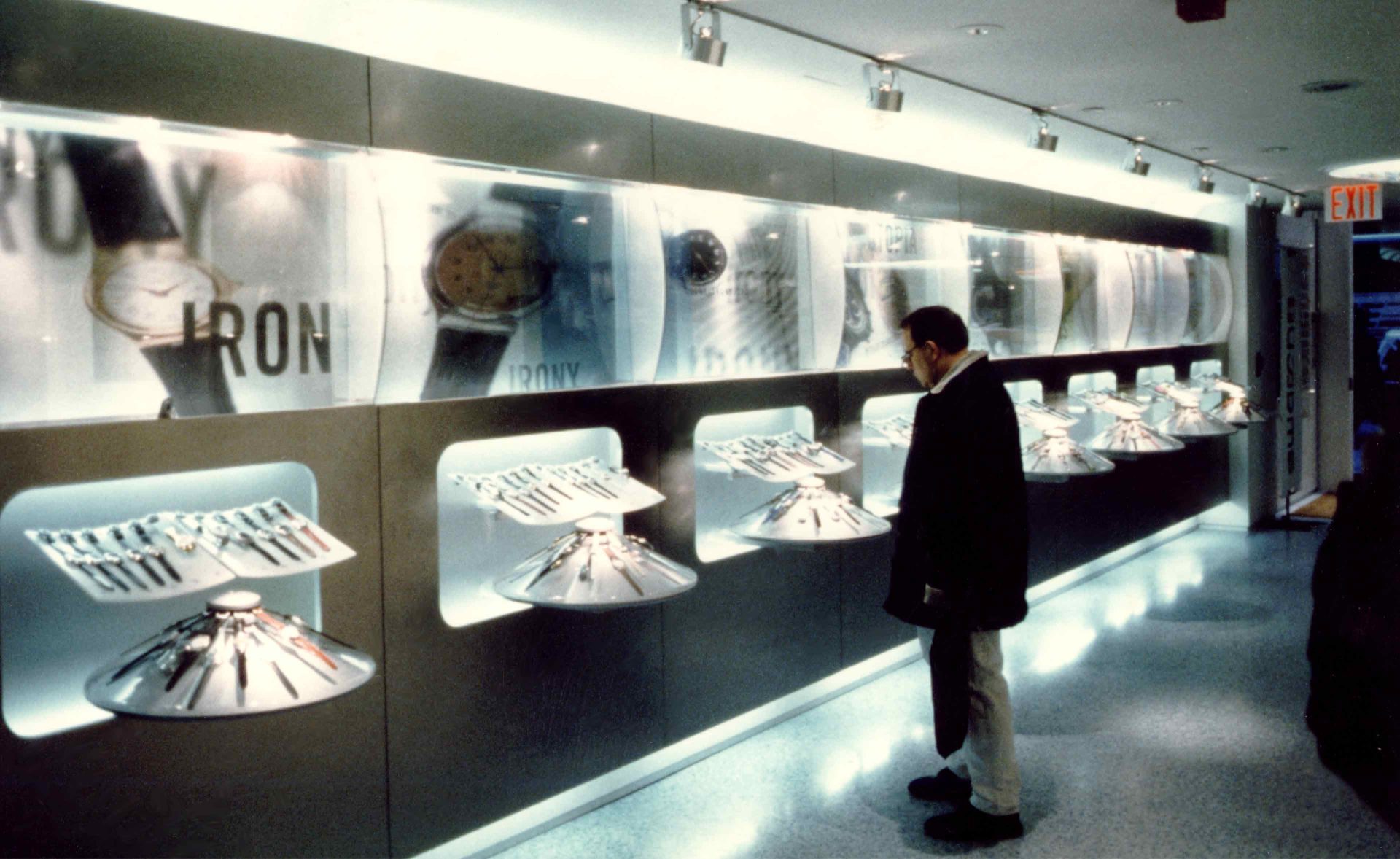 Swatch opened their first TimeShip store on Fifth Avenue in NYC. Our friends at 8inc. asked us to execute the eighty feet deep visual merchandising display. Intentional moiré effects including typography on clear layered panels created an illusion of movement.